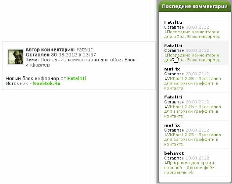 блок-информер "Последние комментарии". Но поискав в интернете его ничего путёвого не нашёл.. Недавно нашёл удобный и красивый информер, Но он был для другой системы - Dle...